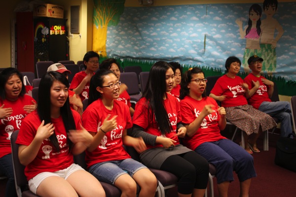 빨간옷으로 맞춰입고 수화찬양을 배우고 있습니다.