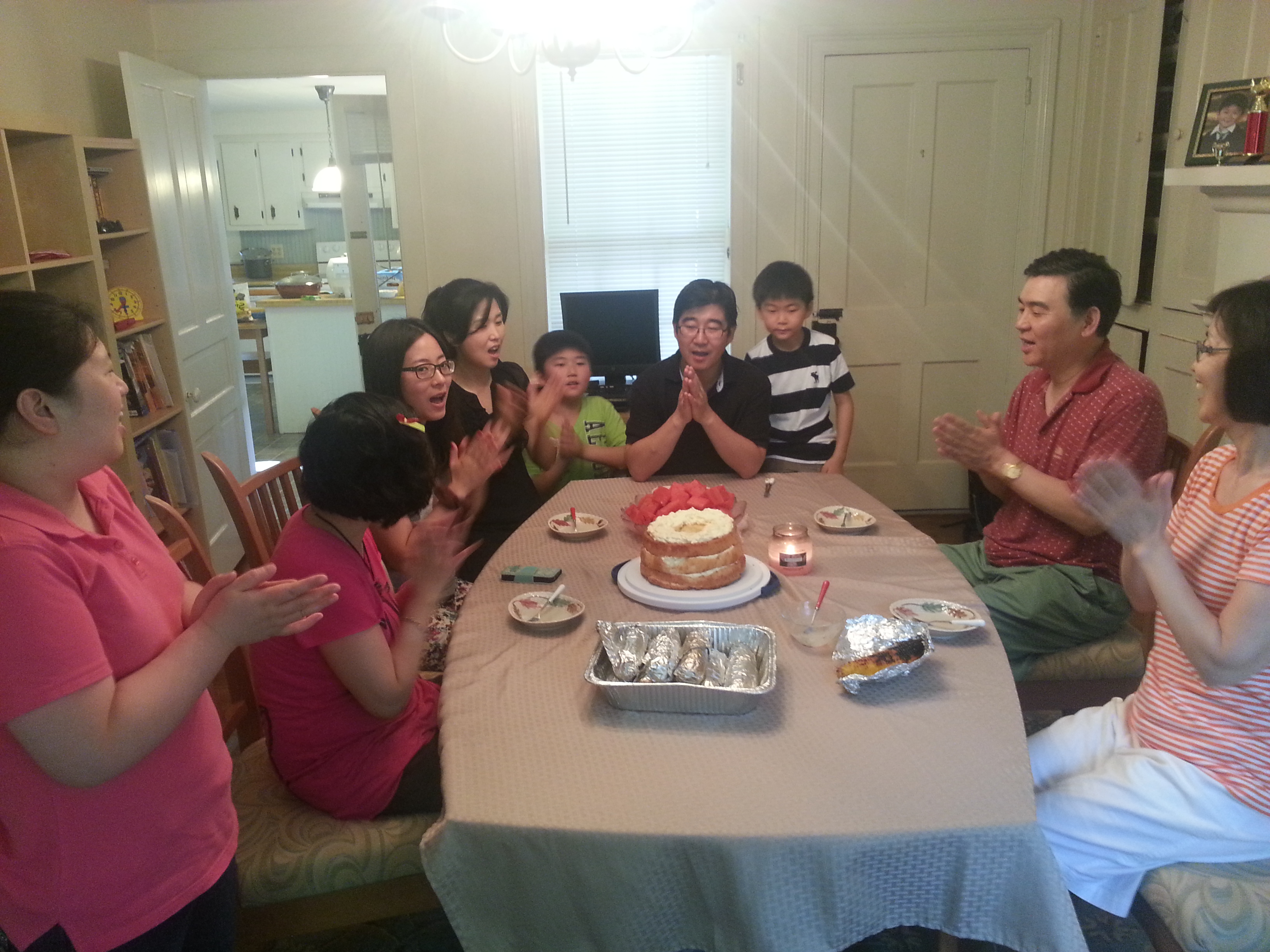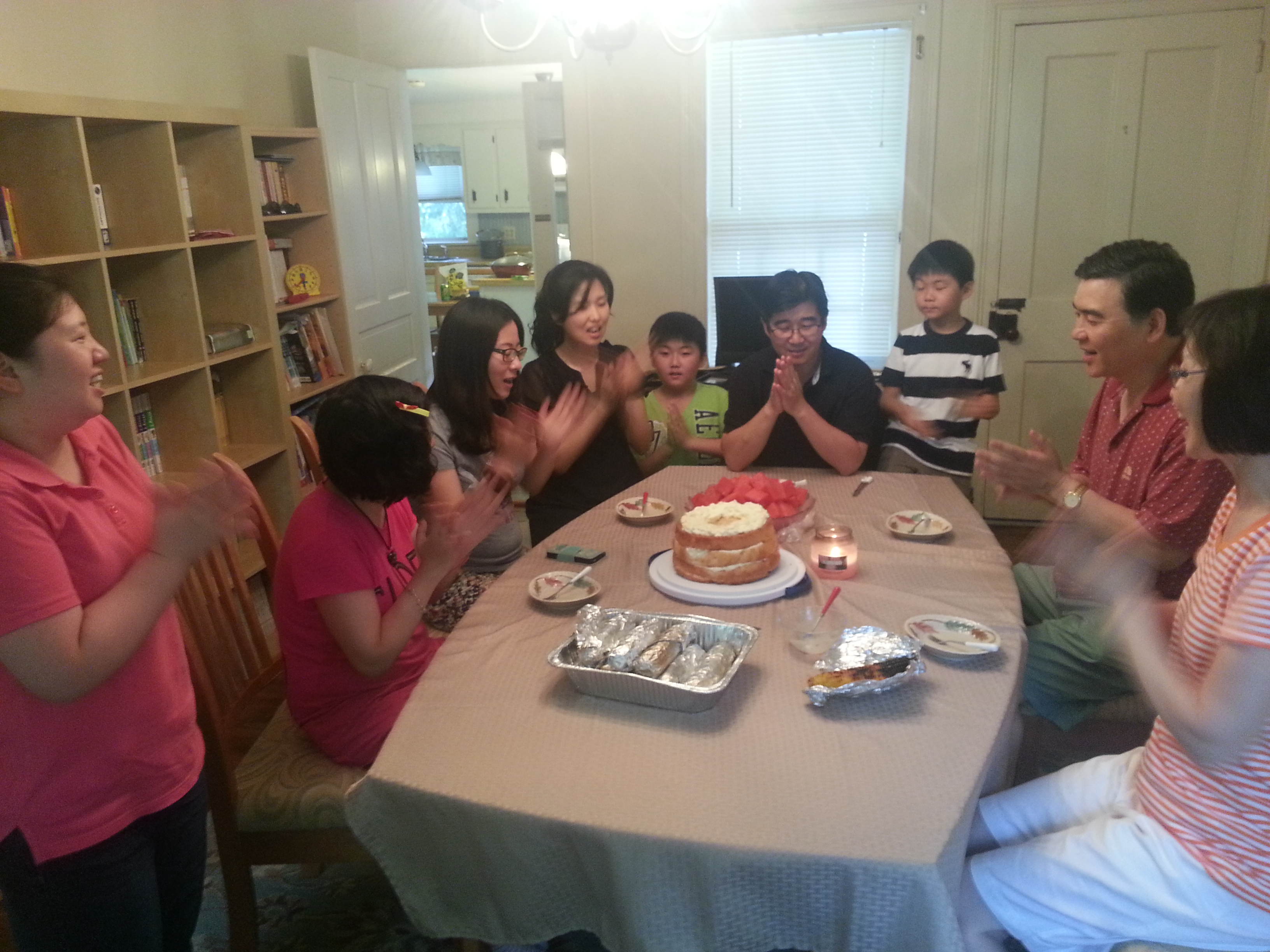 정 영림 사모님께서 밀알 사무간사를 사임한지 1년만에 사모님 사시는 가정에 초청받아서 독립기념일날 놀러 갔습니다. 준비해 주신 맛있는 바베큐, 냉면까지 먹고 맛있는 옥수수는 숯불에 넣어놓고 도란도란 이야기 꽃을 피우다가 다 태워서 못먹었답니다. 대신에 사모님의 비장의 무기인 시원한 팥빙수 한 그릇씩을 먹고 마침 박 석만 목사님 생신이어서 함께 축하하는 시간도 가졌습니다. 초청해 주시고 대접해 주신 박 석만 목사님 가정에 감사드립니다.