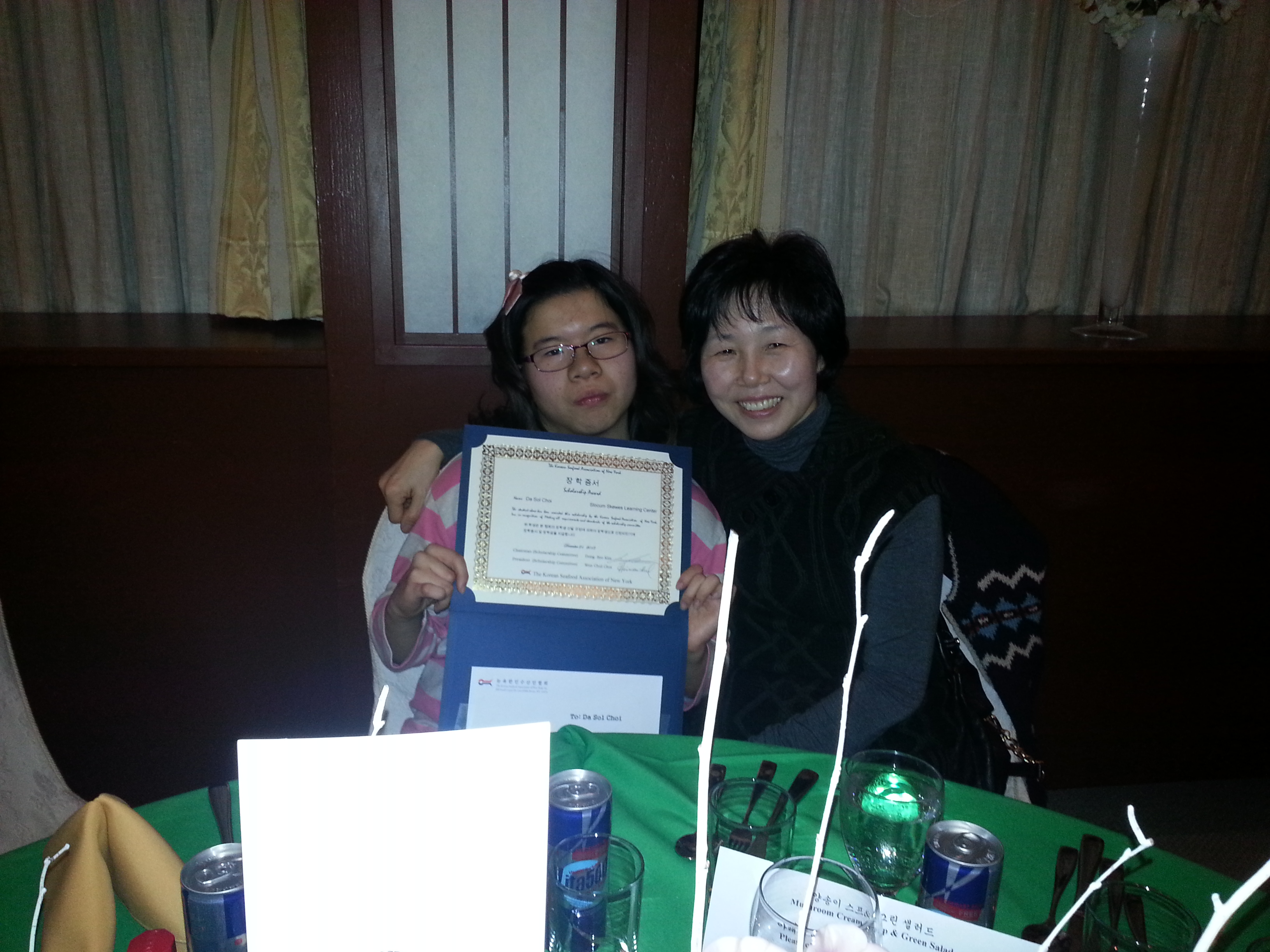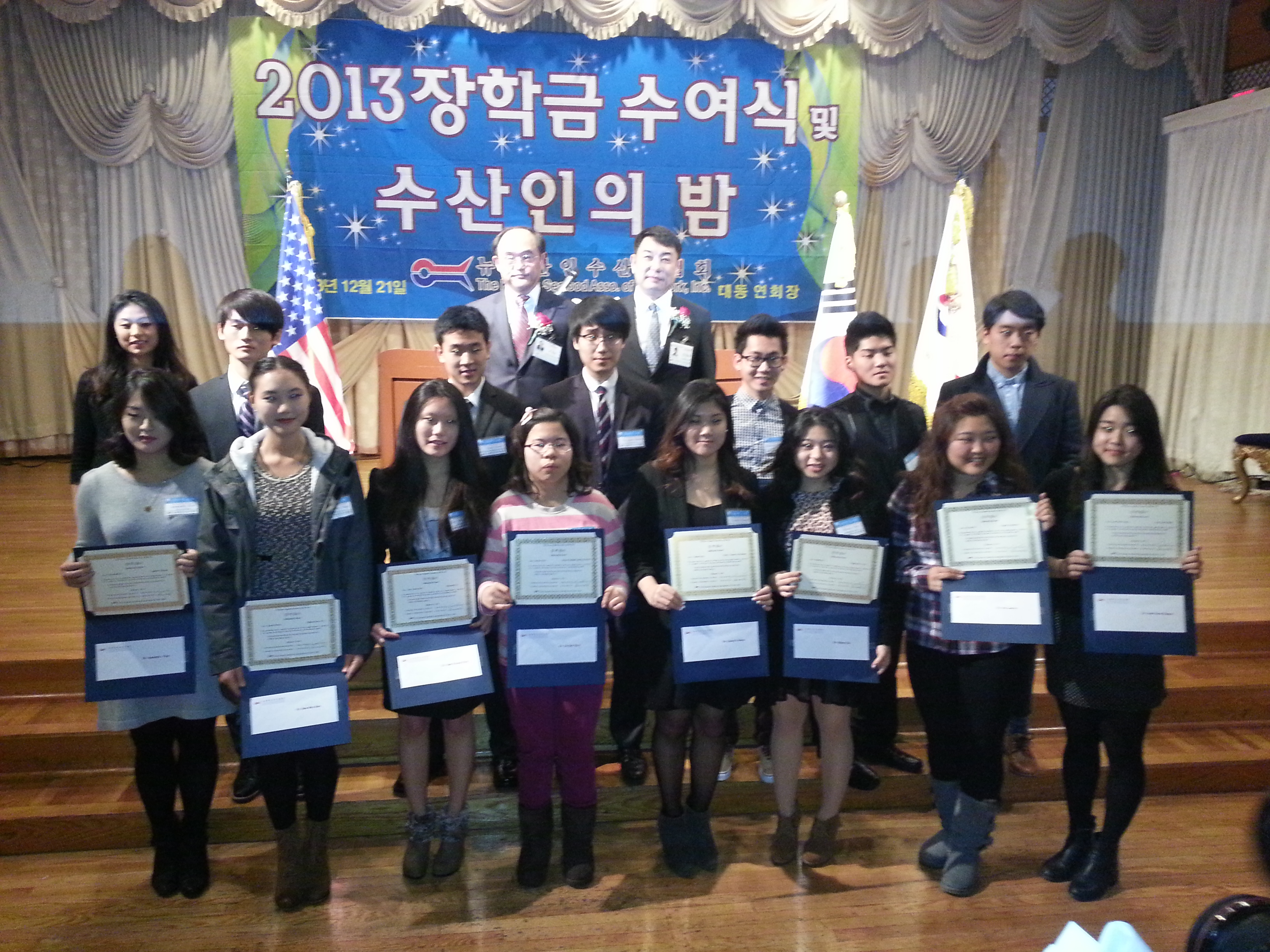 12월 21일(토) 다솔이가 수산인협회에서 선정하는 12학년 15명중의 1인이 되어 장학금($1000)을 받았습니다. 다솔이가 자랑스럽습니다. 다솔이 화이팅!!!